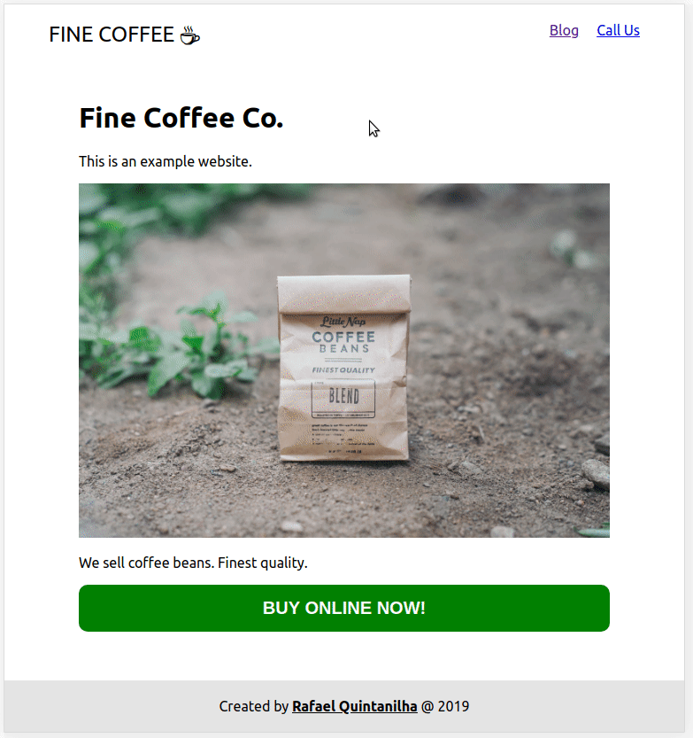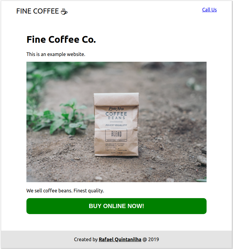 There is nothing fancy on the site right now. It’s just a regular website with some dummy content. You can follow this tutorial by checking this GitHub repo. This project was bootstrapped with Create React App. For simplicity I’ll omit CSS changes but the main file can be inspected here.