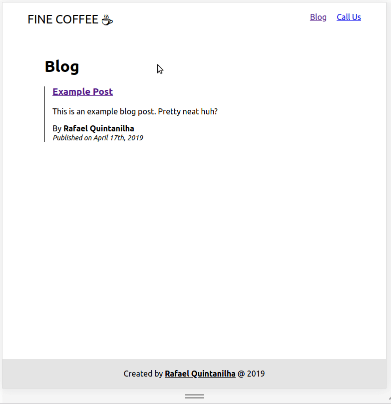 Here is how your blog page should be looking now with the dummy post Butter automatically creates: