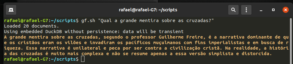 Nós então alimentamos o modelo com os n "pedaços de texto" (ou chunks) mais próximos da pergunta, e instruímo-no a responder baseado nesses chunks. Assim, garantimos que a resposta tem que ser derivada desses documentos.