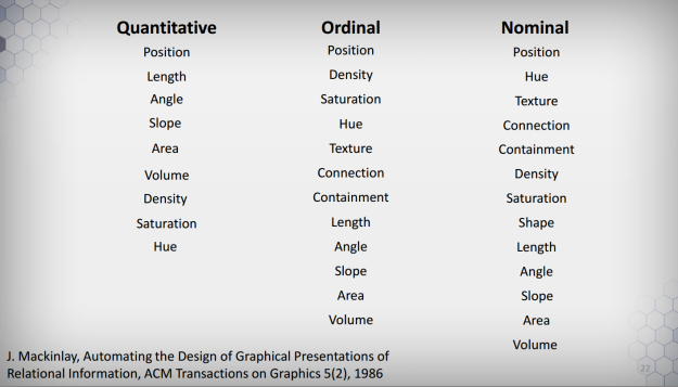 The above slide ranks (from top to bottom) which kind of representation is best applied given the type of data (Quantitative, Ordinal, or Nominal). An easy takeaway is that you can’t go wrong with Position, which turns out to be exactly what we measure with Line Charts.