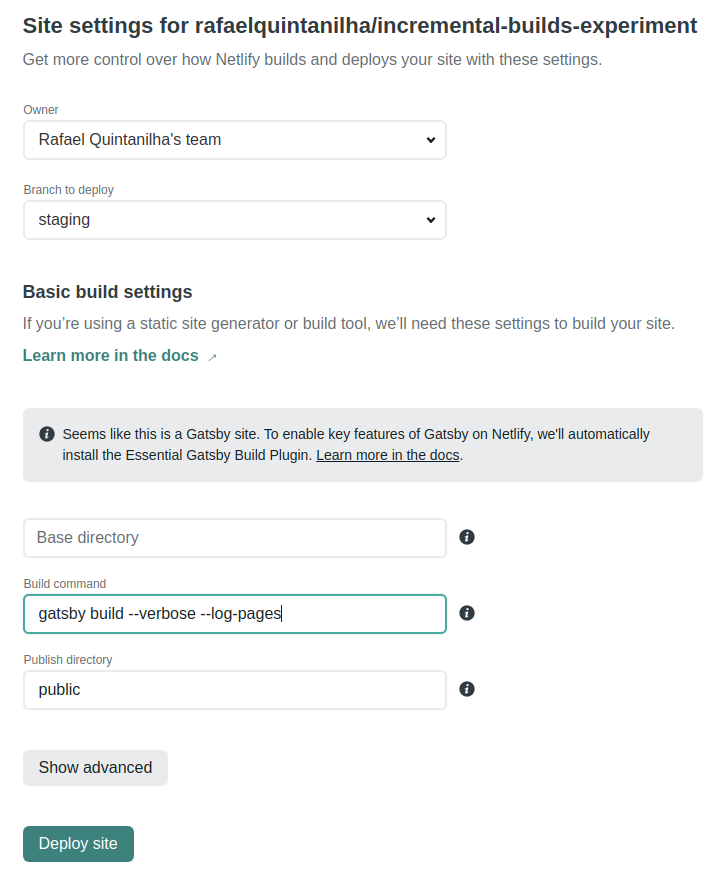 Note: Due to cache reasons it might be that the incremental builds kick in only after you have rebuilt your site at least once.